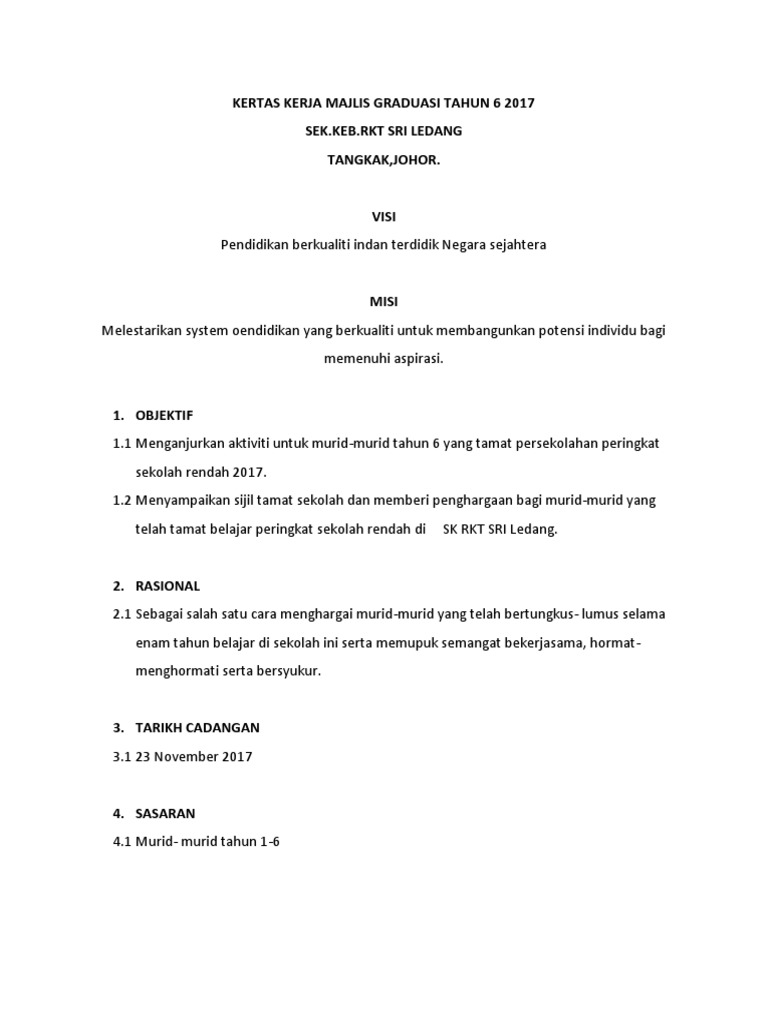 Contoh Kertas Kerja Majlis Graduasi Pdf